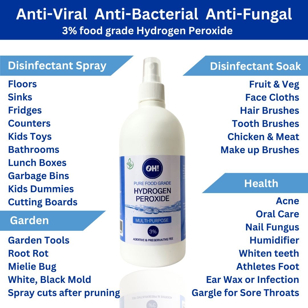 Food Grade hydrogen peroxide is one of the purest forms of hydrogen peroxide and does NOT contain stabilisers, metals or any additives.
